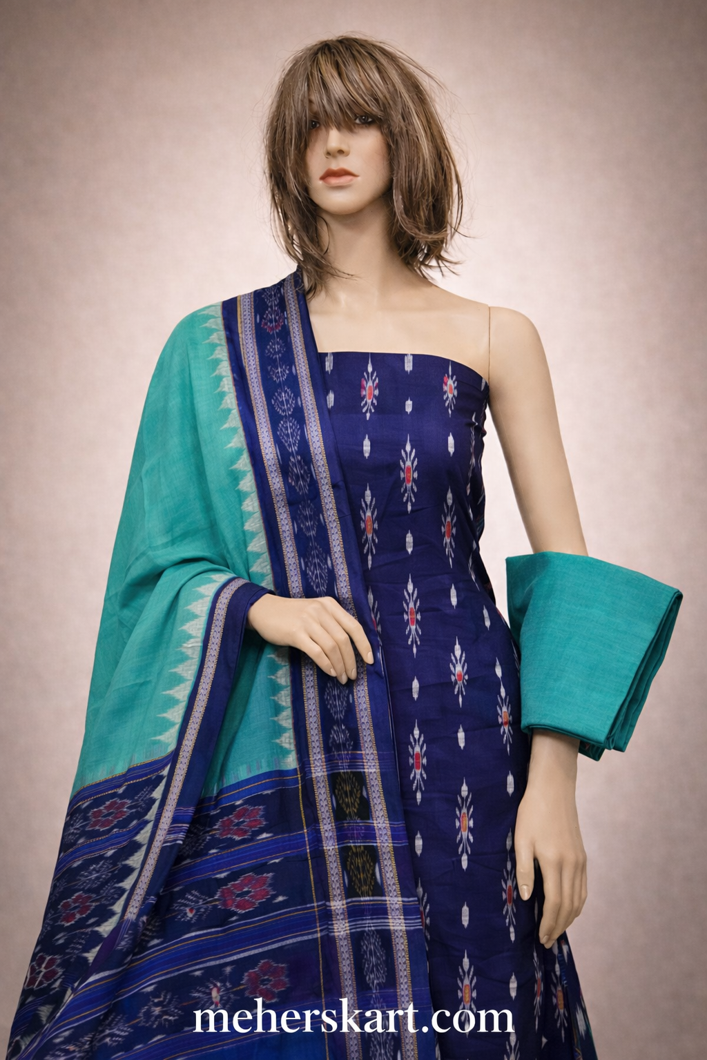 Home salwar 2100 Sambalpuri unstitiched dress meterial Blue Rama green