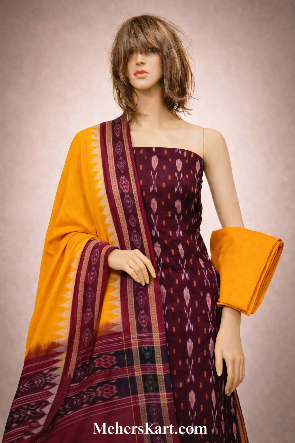 sambalpuri unstitiched dress meterial coffee yellow