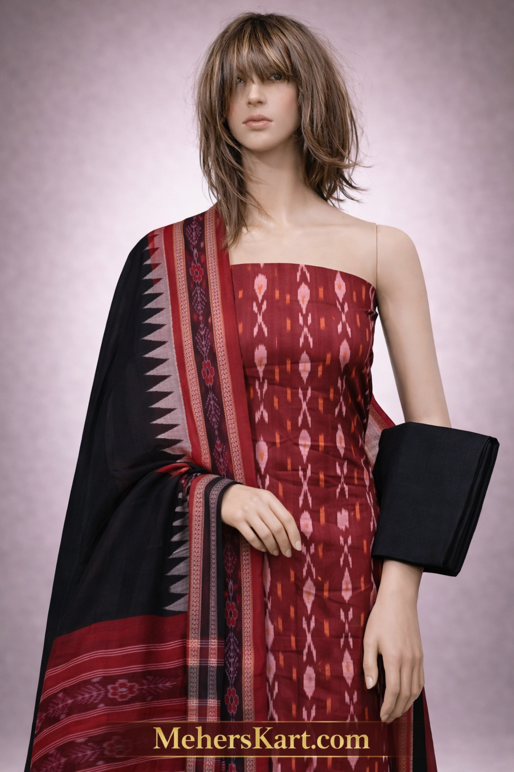 Home salwar 2100 sambalpuri unstitiched dress meterial meroon black