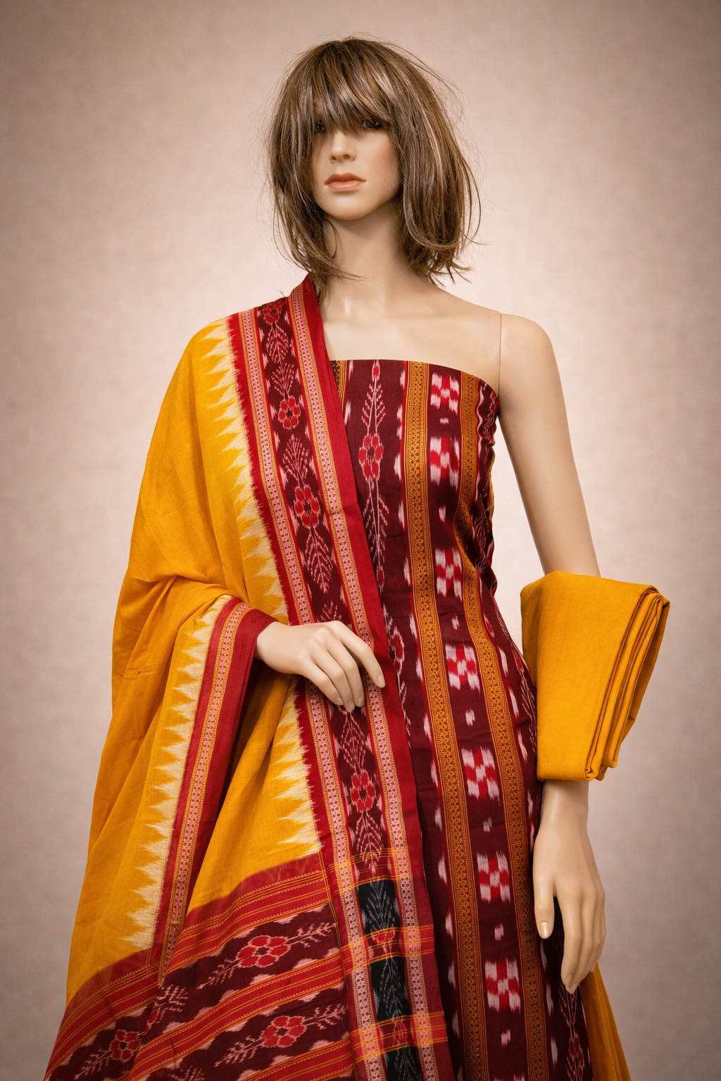 Handloom fabrics are known for their durability, natural feel, and timeless appeal. This dress material not only offers comfort but also reflects the beauty of traditional weaving artistry.