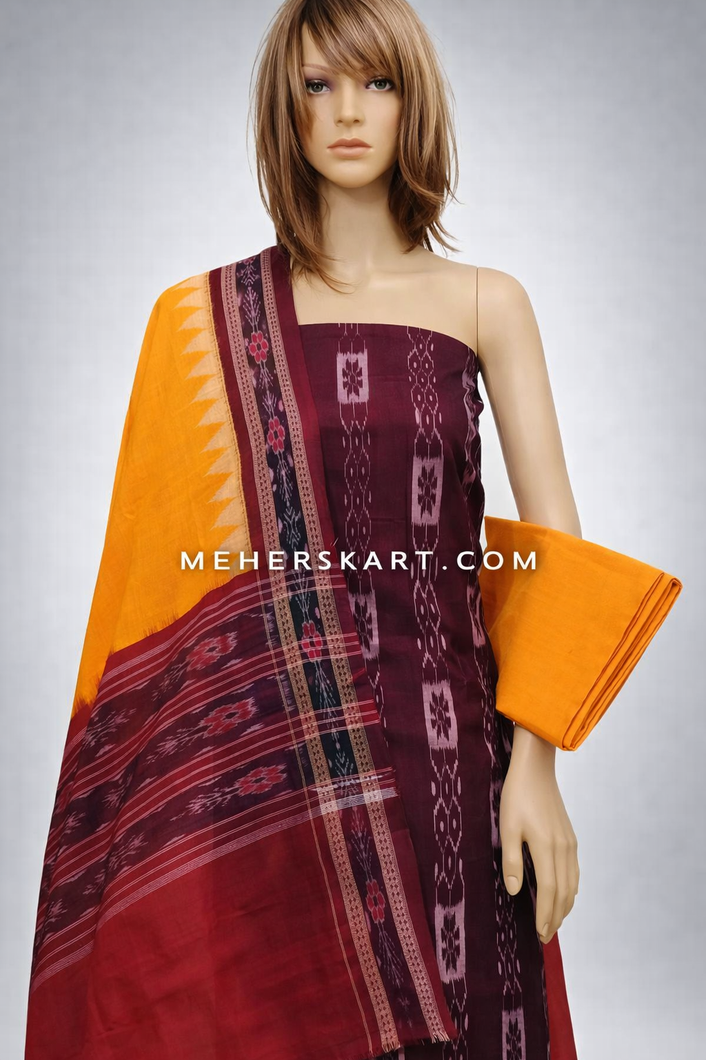 Home salwar 2100 sambalpuri unstitiched dress meterial coffee yellow
