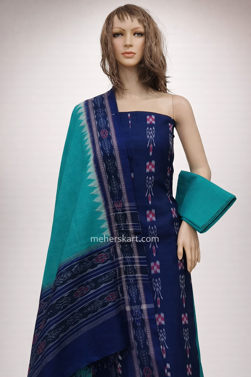 Home salwar 2100 sambalpuri unstitiched dress meterial blue rama green