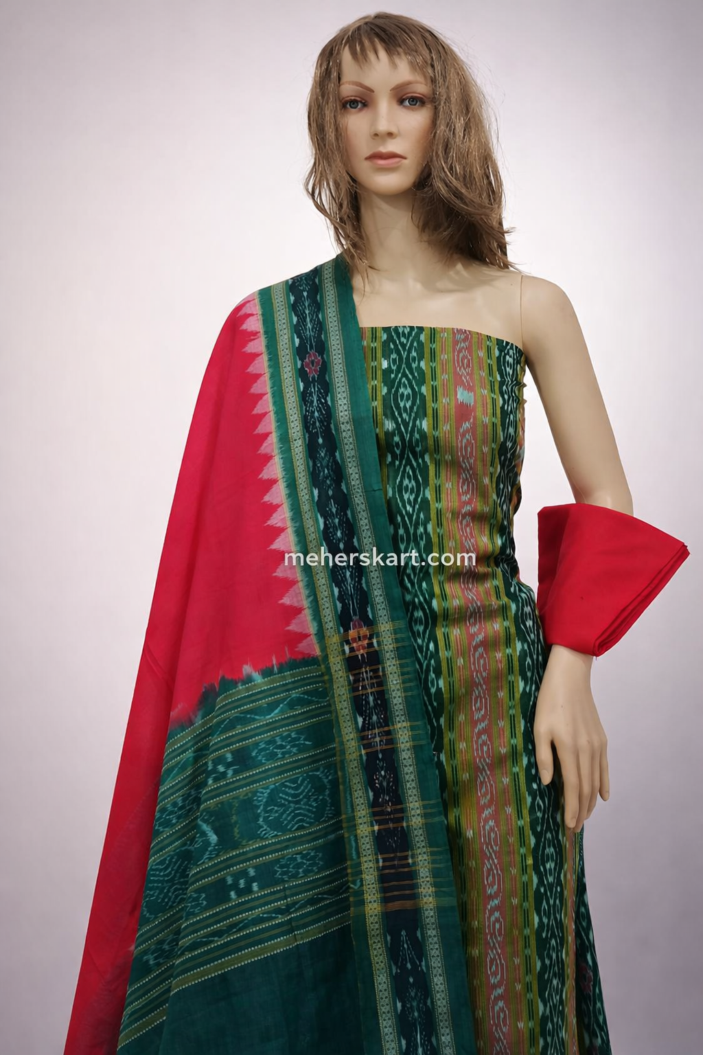 Home salwar 2400 sambalpuri unstitiched dress meterial green red
