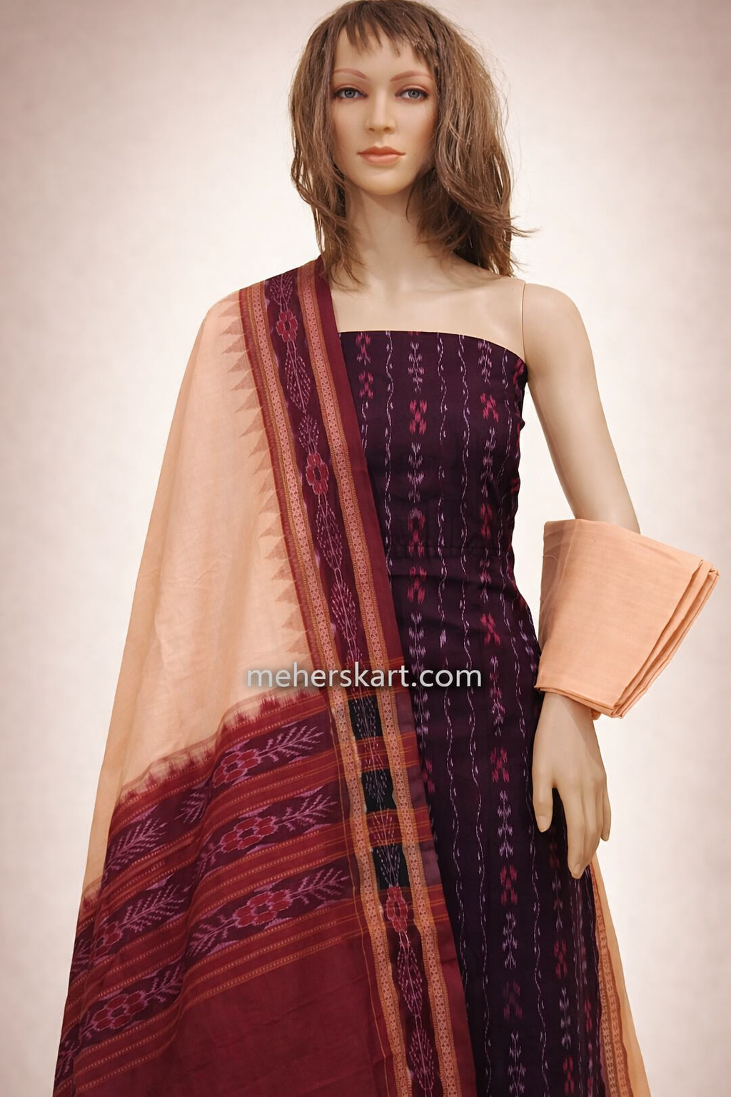 Home salwar 2100 sambalpuri unstitiched dress meterial coffee cream