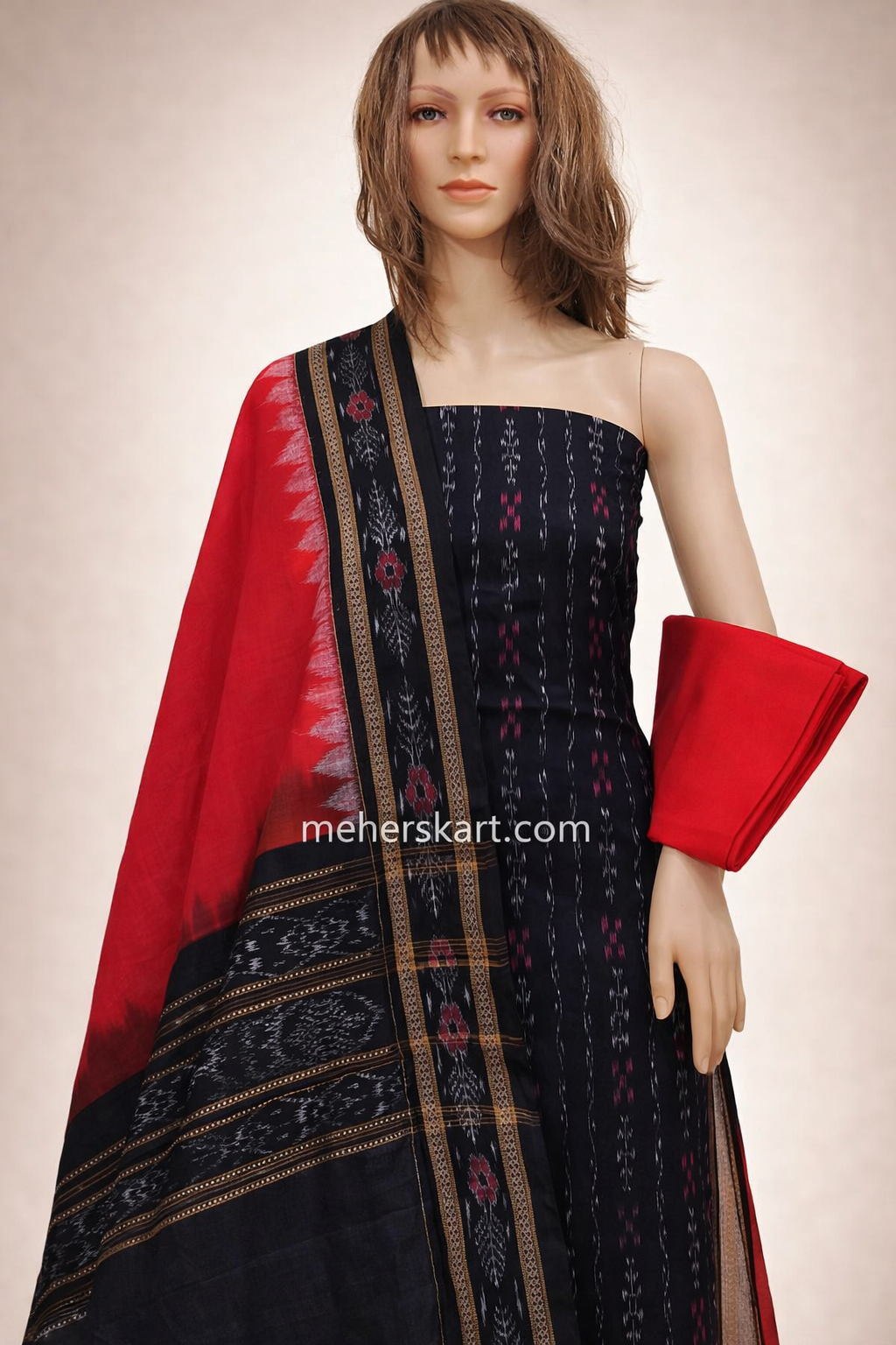 Home salwar 2100 sambalpuri unstitiched dress meterial black red