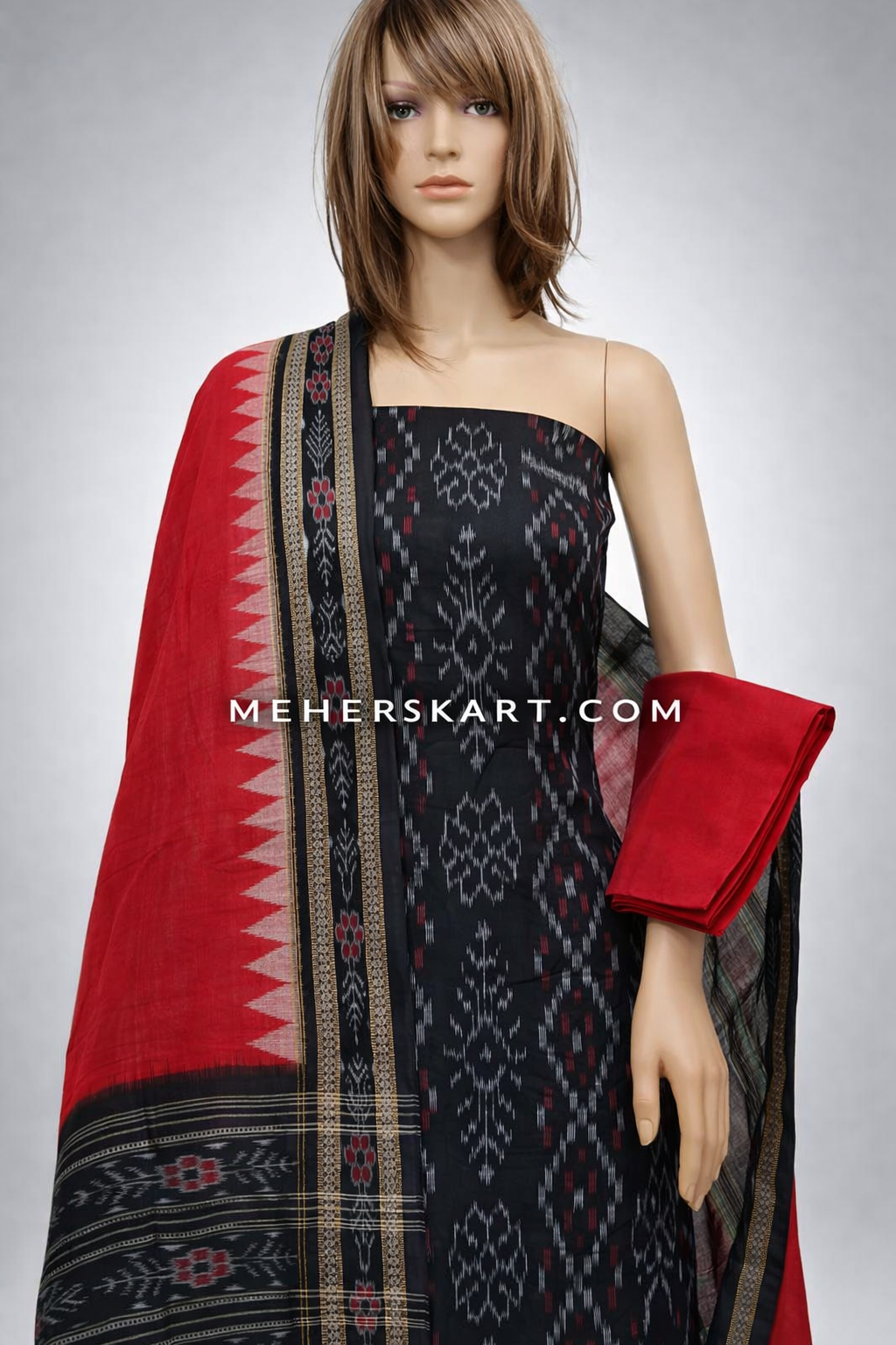 Home salwar 2100 sambalpuri unstitiched dress meterial black red