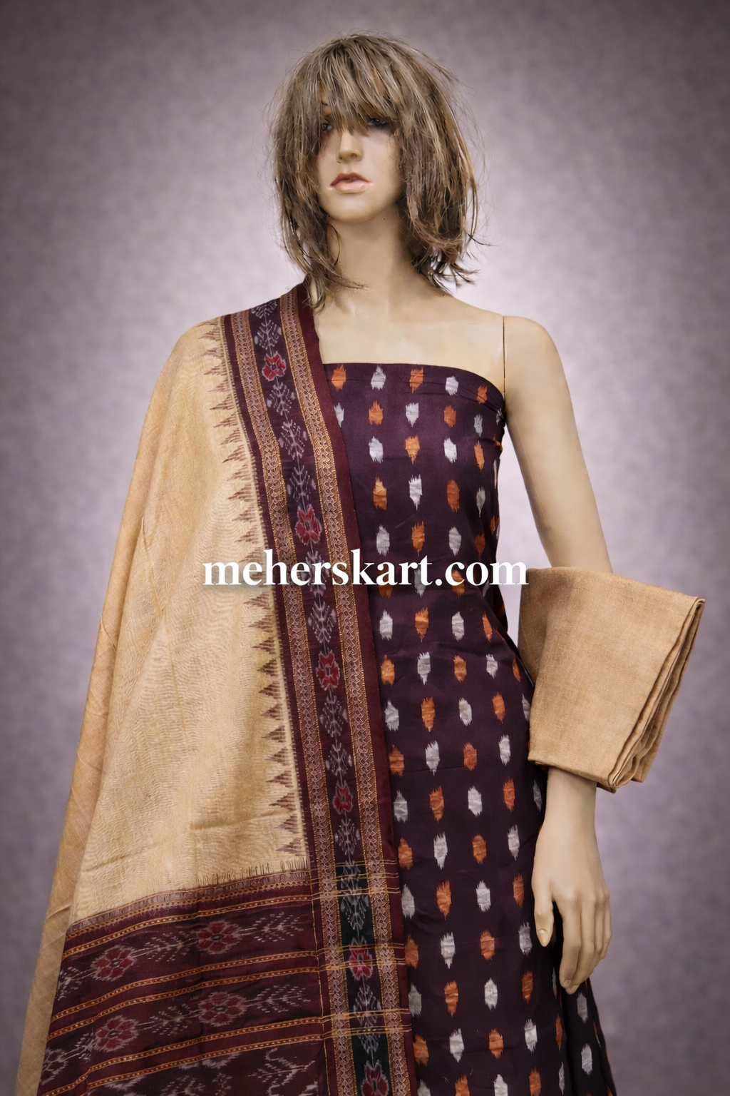 Home salwar 2100 sambalpuri unstitiched dress meterial coffee cream