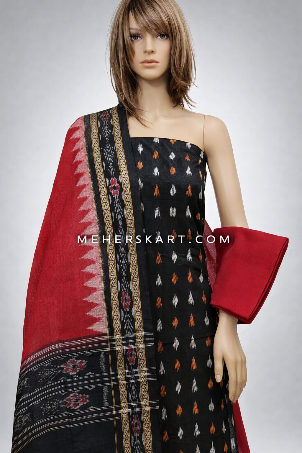 Home salwar 2100 sambalpuri unstitiched dress meterial black red