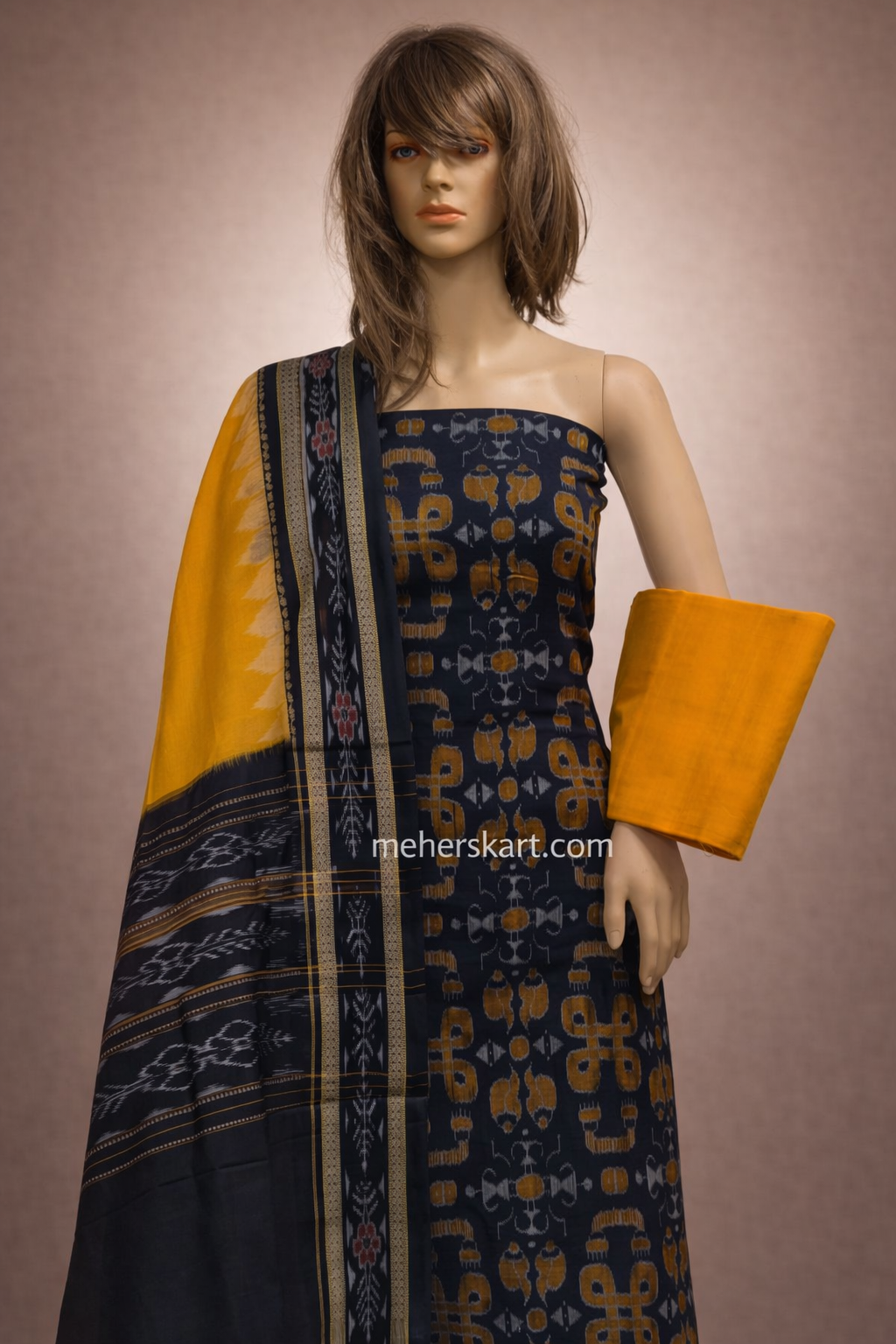sambalpuri unstitiched dress meterial black yellow