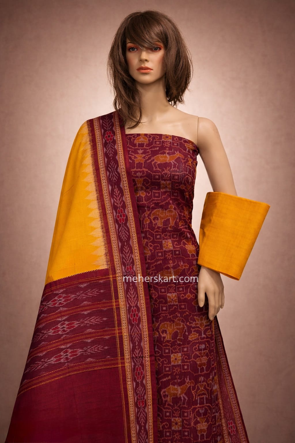 Home salwar Paper sambalpuri unstitiched dress meterial meroon yellow