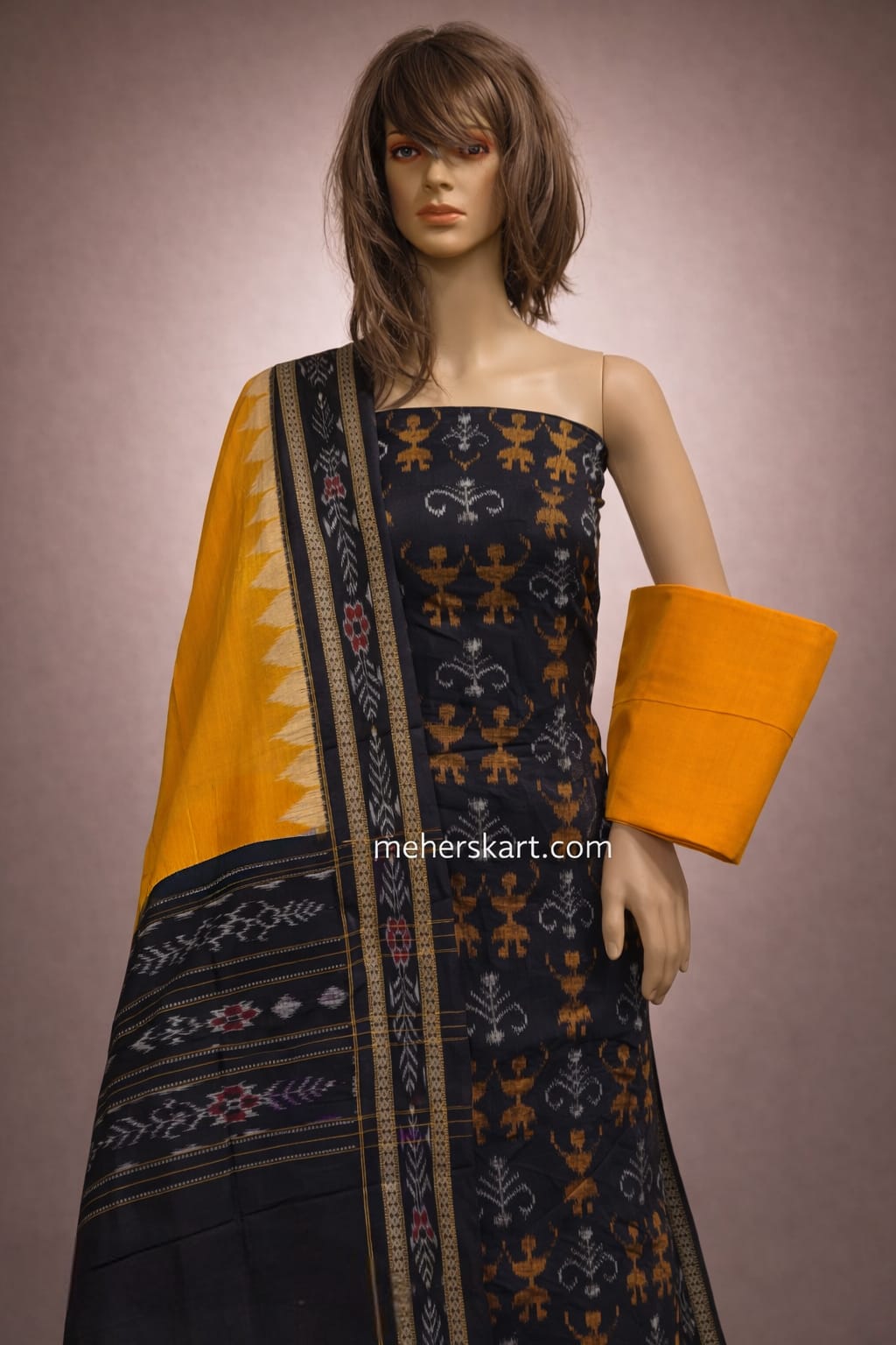 sambalpuri unstitiched dress meterial black yellow