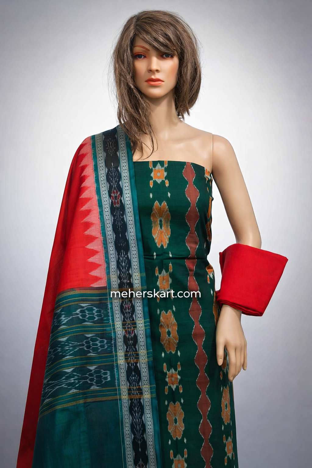 sambalpuri unstitiched dress meterial green red