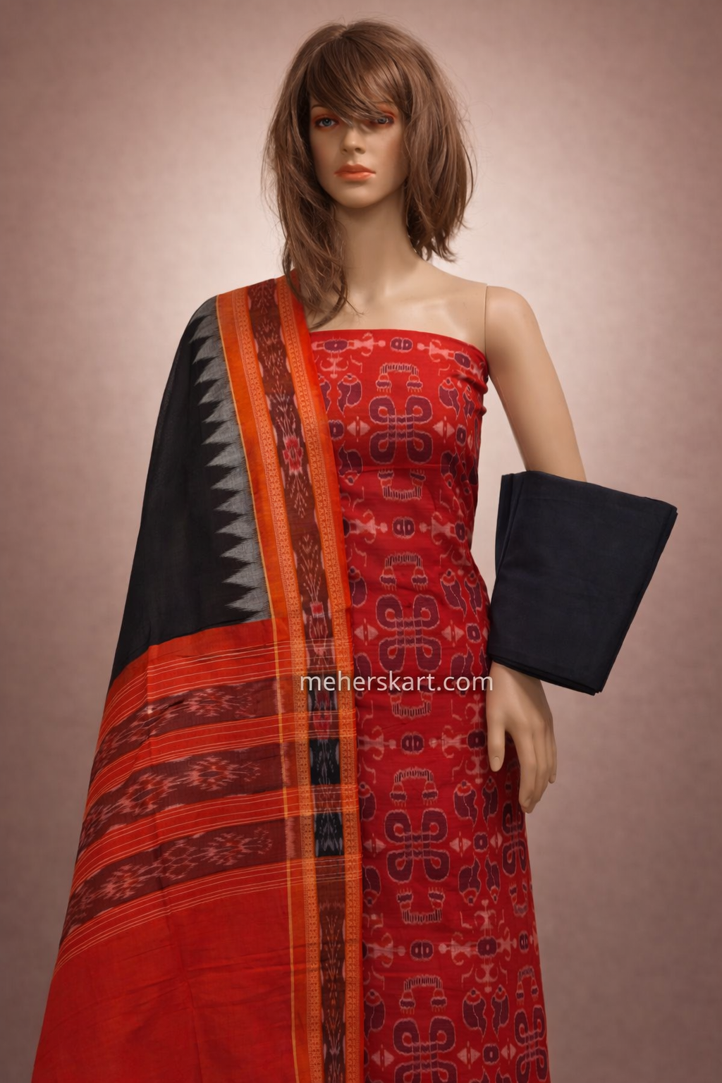 sambalpuri unstitiched dress meterial meroon orange black