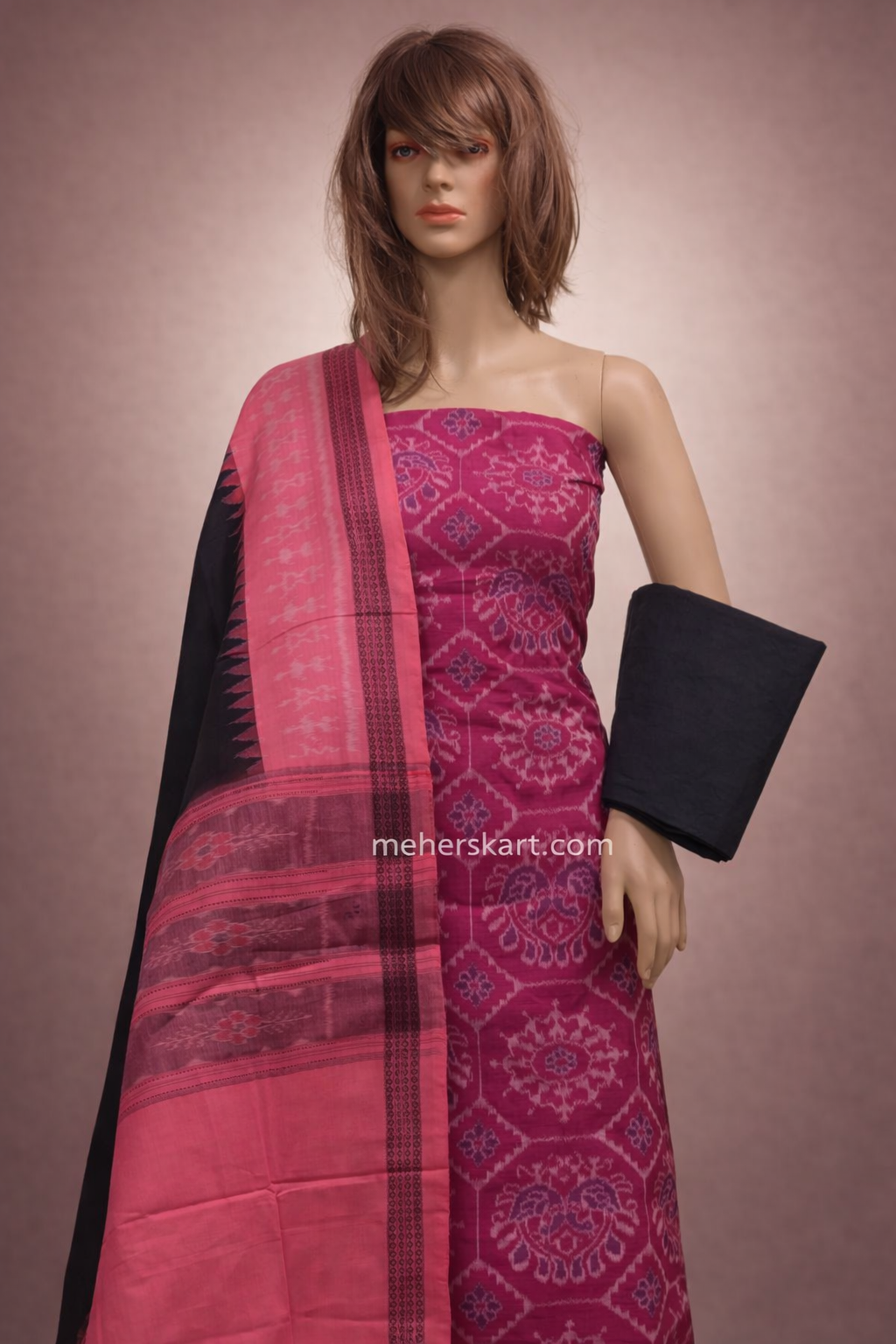 Home salwar Paper sambalpuri unstitiched dress meterial pink black